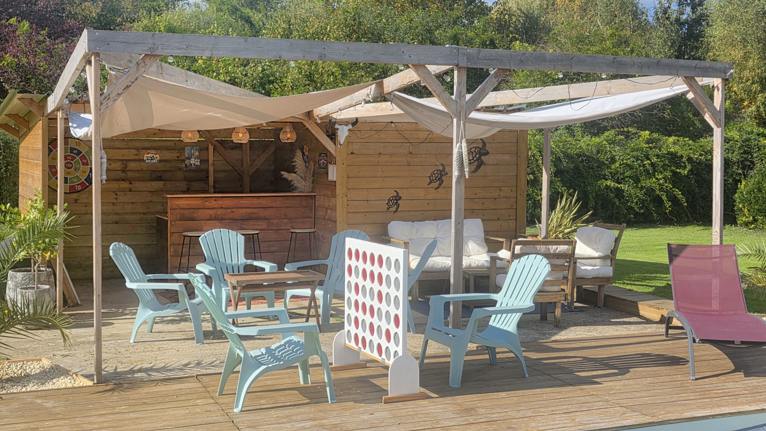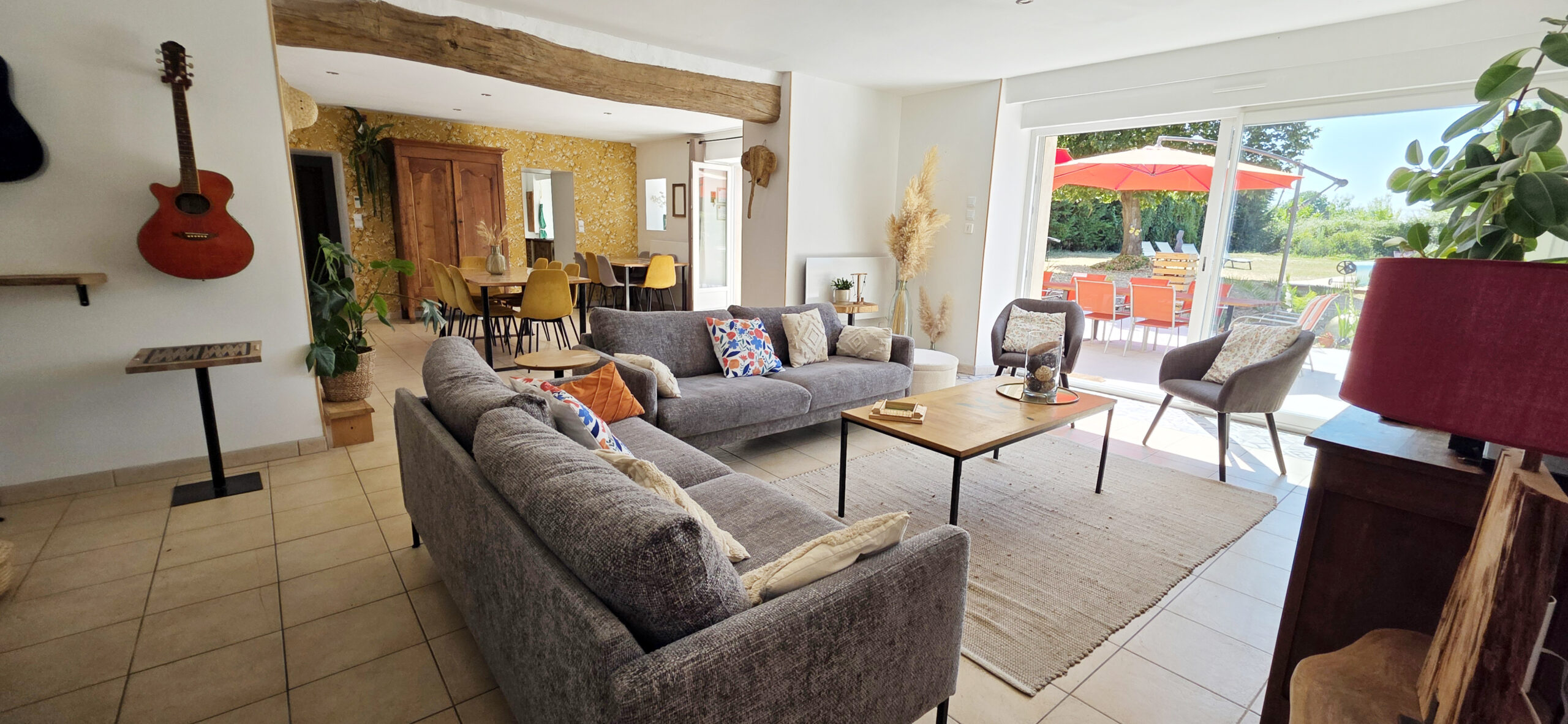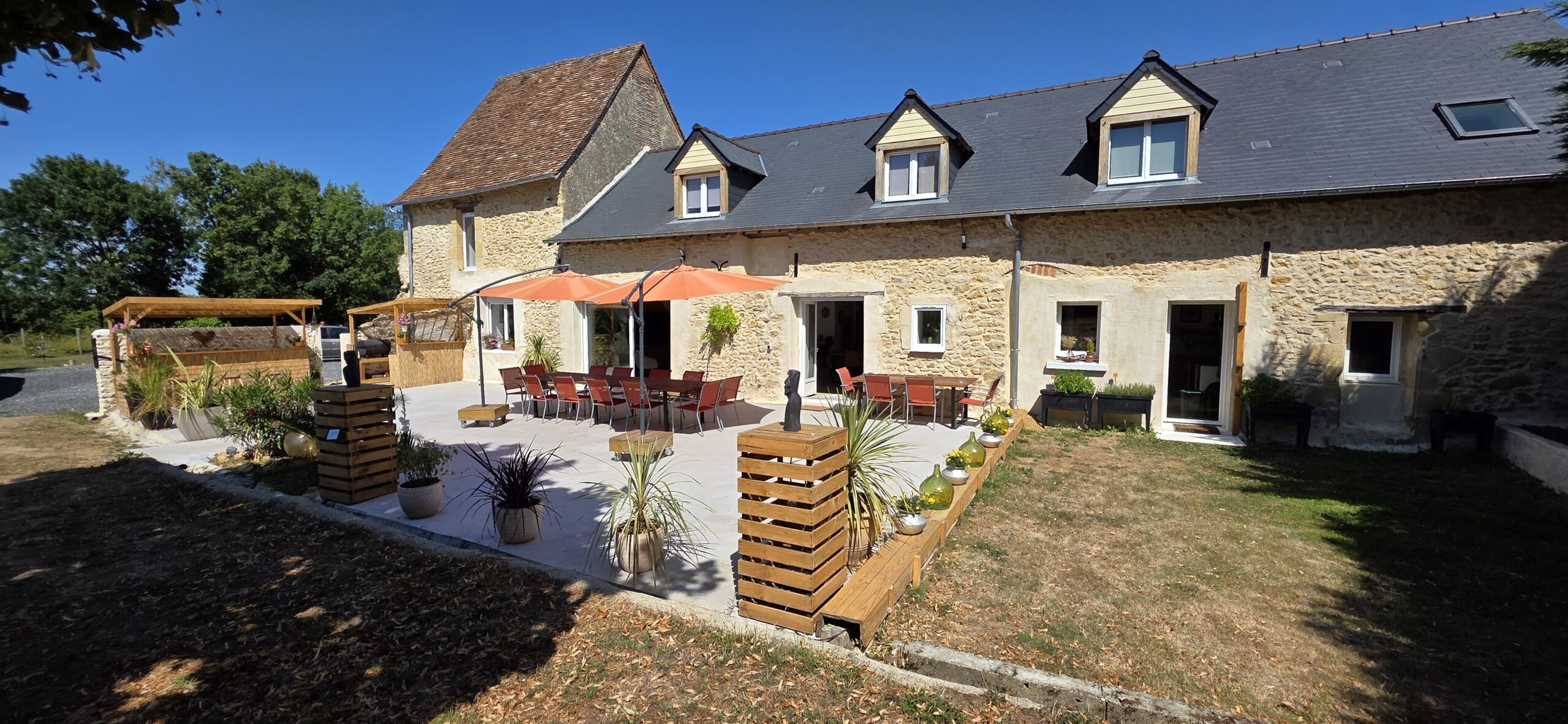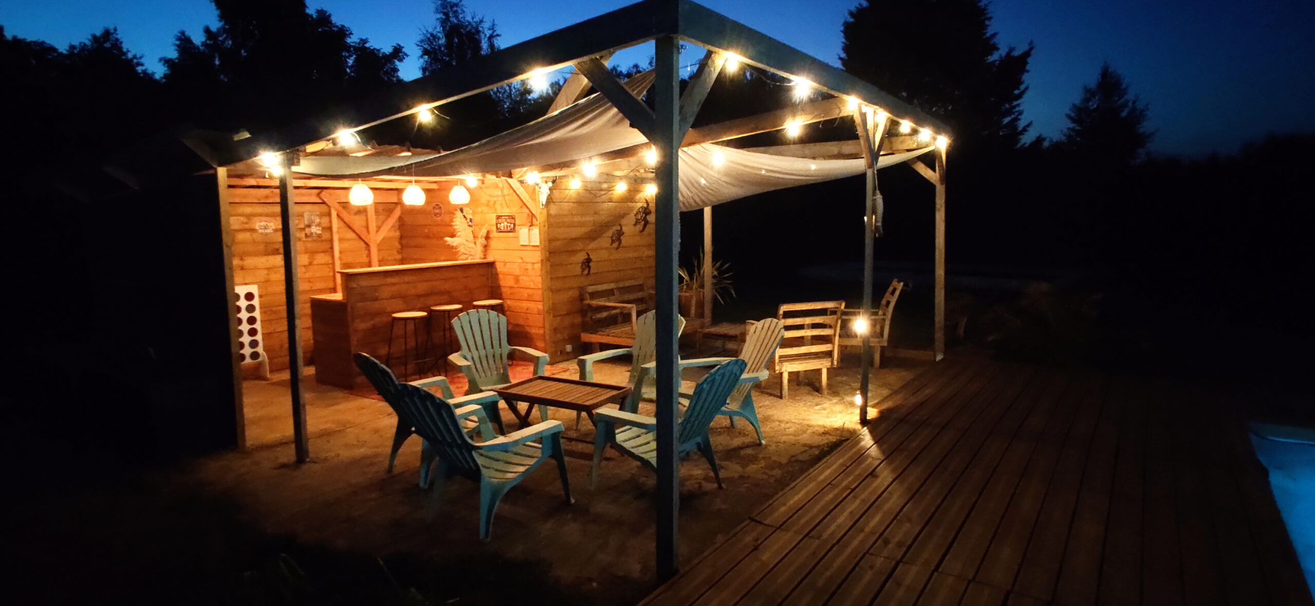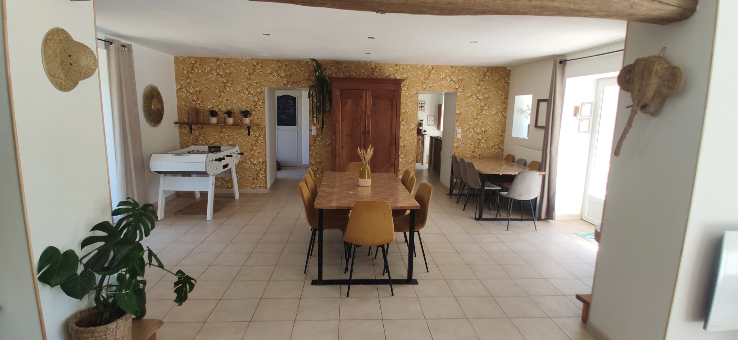 Les chambres Chambre triple 1er étage Lit 160*200 Chambre double 1er étage Lit 160*200 Chambre double 1er étage Lit 160*200 Dortoir 8 personnes RDC Dortoir 8 personnes RDC Lits 90*200 Rideaux à chaque lit Les espaces de vie Salle à manger Salle à manger Salon Cuisine équipée Salon Cuisine équipée Salle de bain RDC Salle de bain RDC Salle de bain 1er étage Salle de bain 1er étage Salle de Jeux Salle de Jeux Salle de Jeux Salle de Jeux Le jardin Jardin Jardin Jardin coté Est Coucher de soleil depuis la terrasse Parking voiture Parking voiture Piscine 8m x 4m x 1.5m avec alarme Détente au bord de la piscine Pool house Bar piscine Pool house éclairé Pool house éclairé Terrasse vue piscine Terrasse plein Ouest 140m² Terrasse éclairée Bar terrasse Espace barbecue Bar terrasse Espace bar : BBQ Terrain de foot Terrain du foot-billard Terrain de pétanque 11,5 x 3.5 Terrain de pétanque éclairé Terrasse Est Parcours de Disc Golf 6 paniers pour s'initier au disc golf Espace enfants avec bac à sable Réservé aux enfants Balançoire Tour de Froebel Table de ping-pong Pétanque en famille Course par équipe Activités autour du gîte